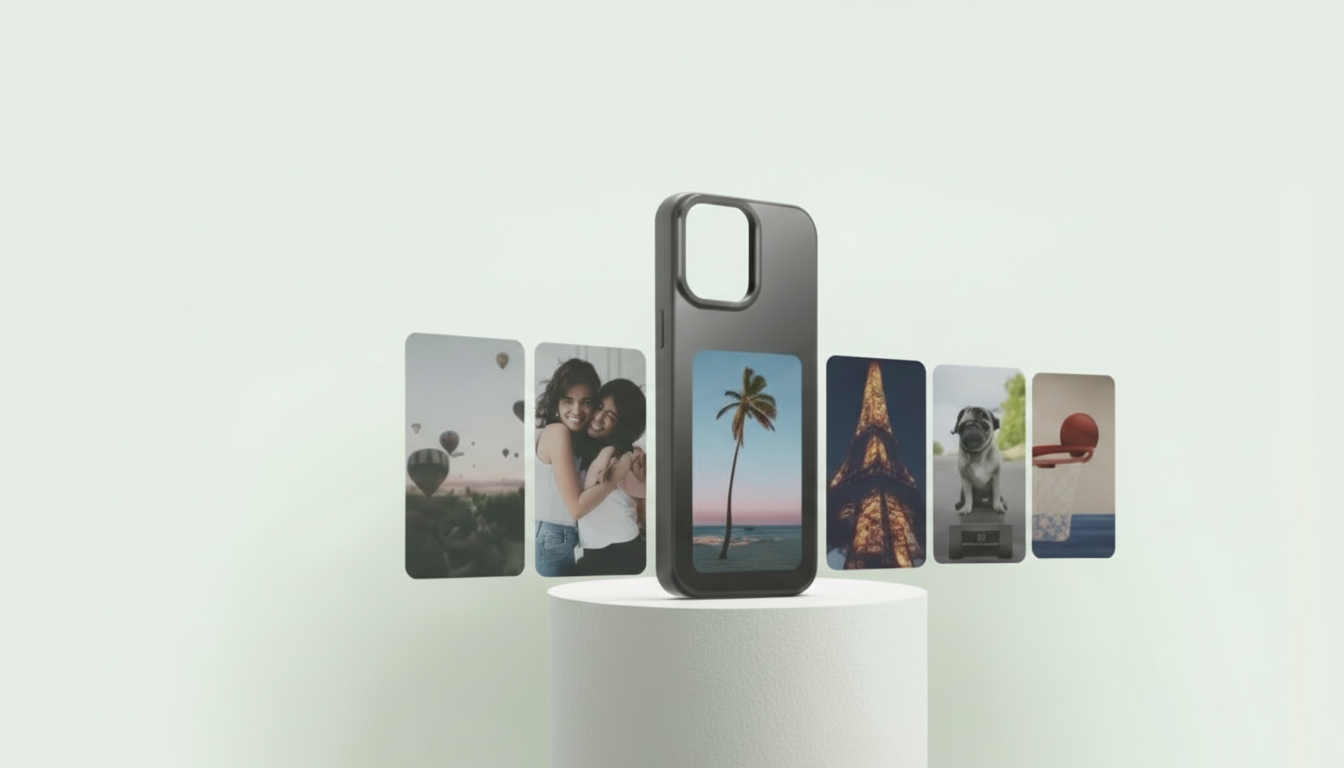 Personnalisez votre coque de téléphone avec l'écran e-ink pour une apparence unique et modifiable.
